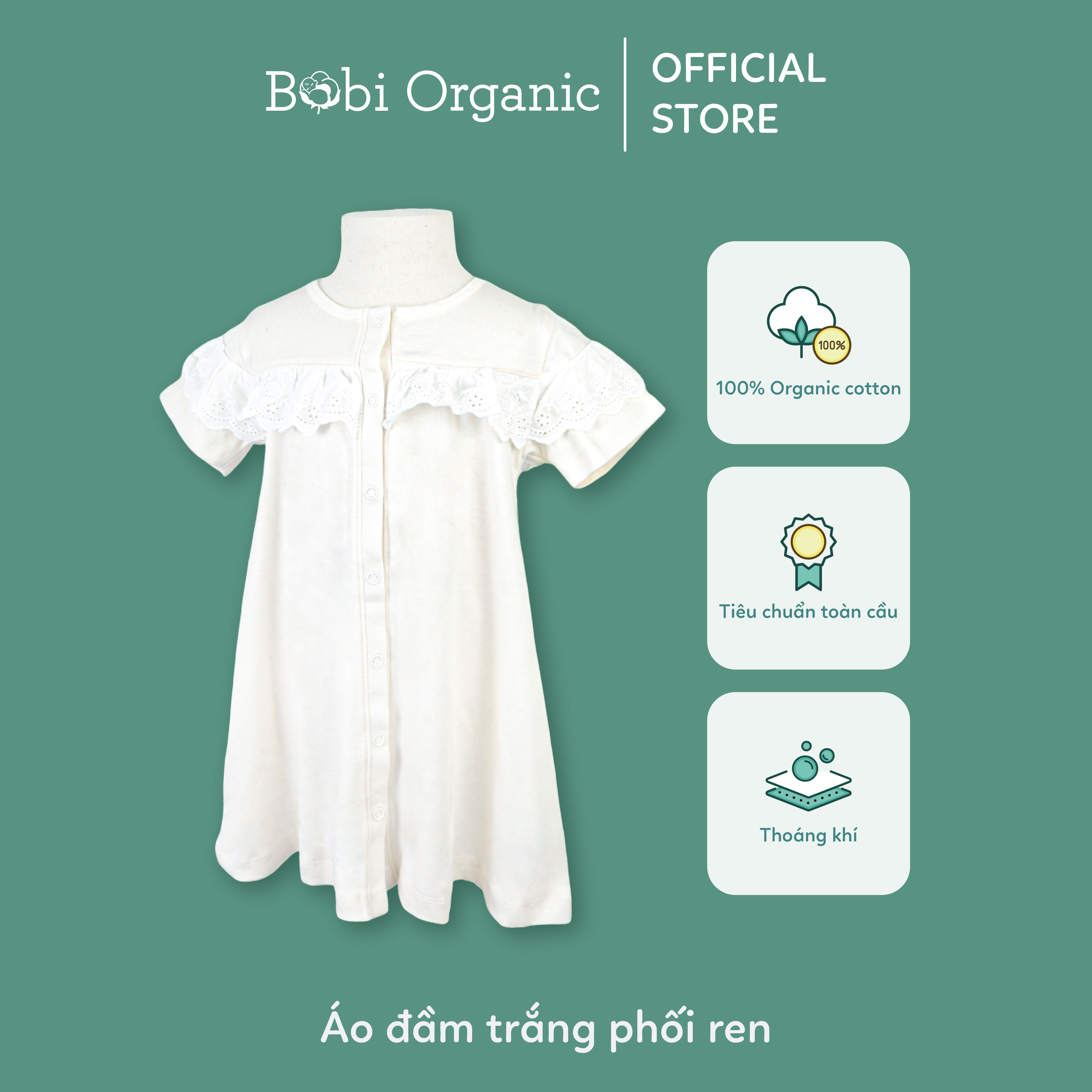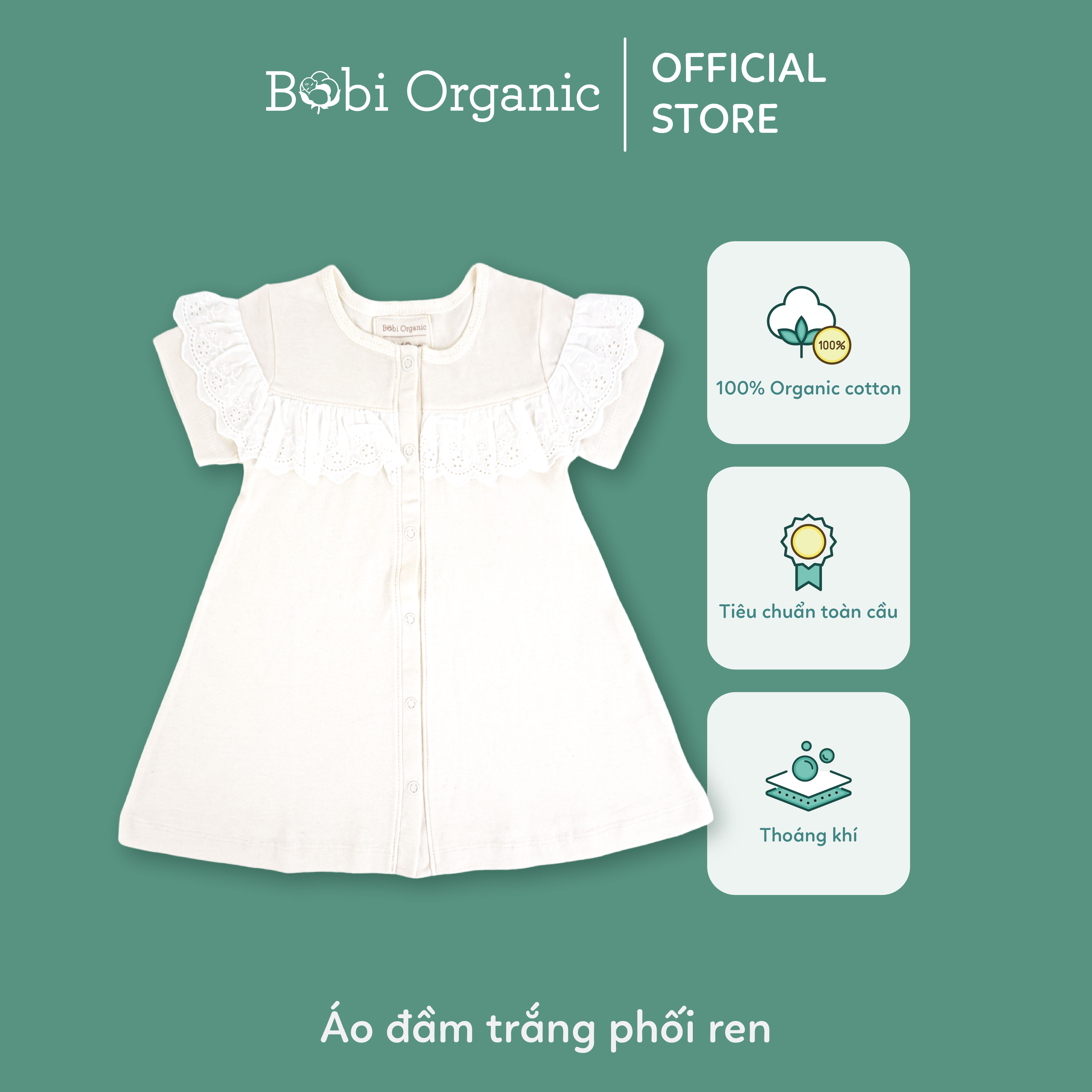 Áo đầm trắng phối ren cho bé gái từ 0-24 tháng tuổi