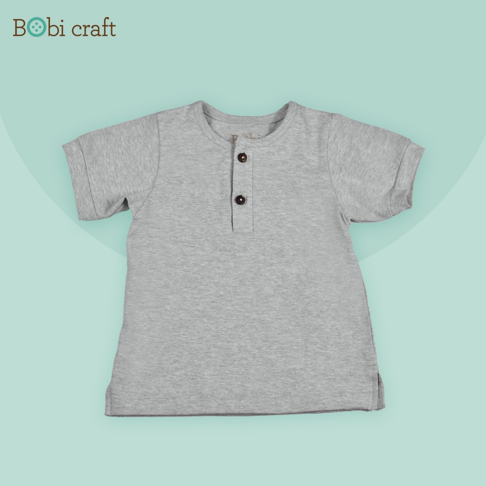 Áo thun cổ viền tròn xám cho trẻ em từ 0-24 tháng tuổi