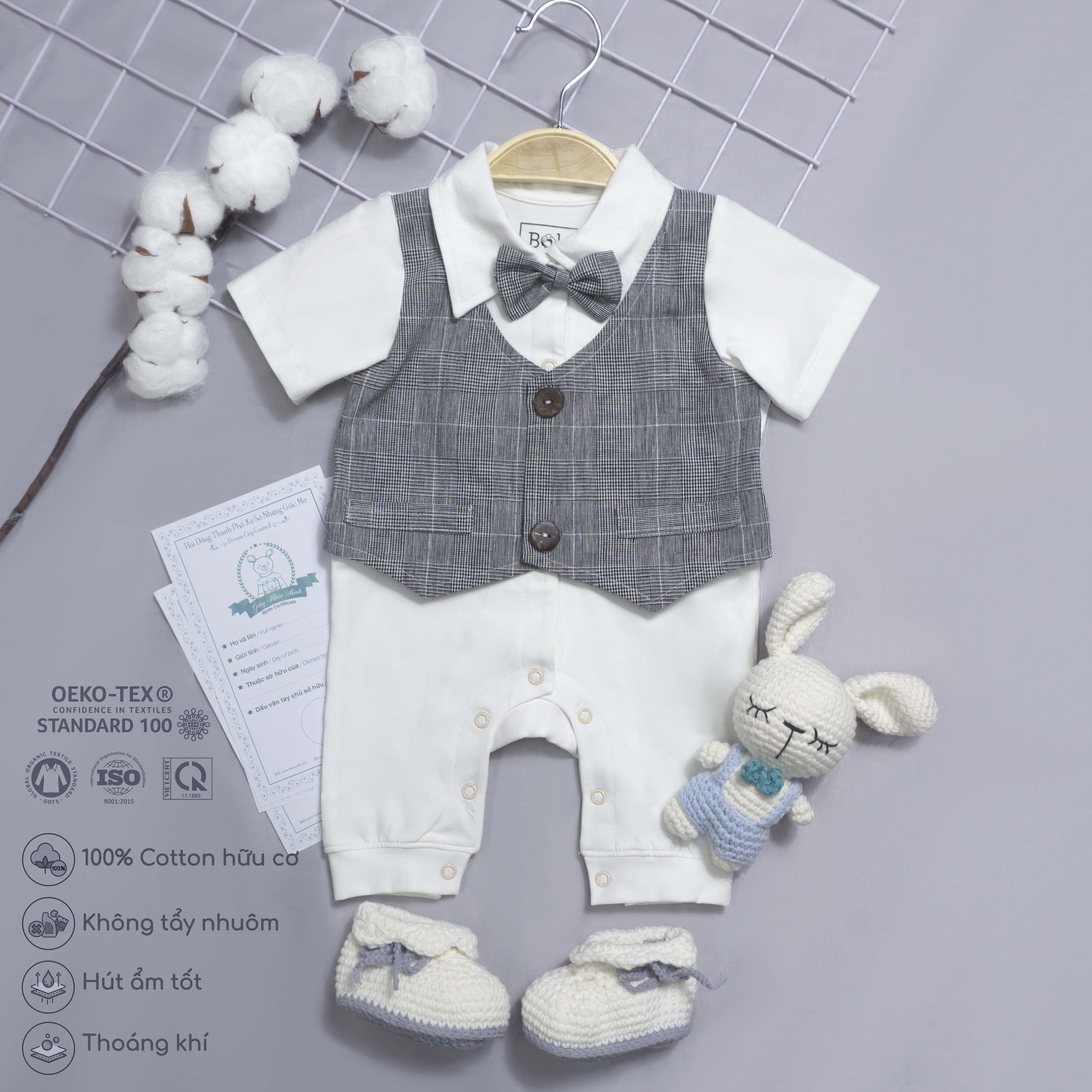 Quần áo trẻ em Bobicraft - Bộ đồ liền thân bodysuit Romper Gile Caro bé trai - Cotton hữu cơ organic an toàn