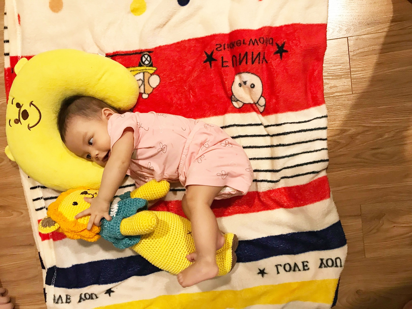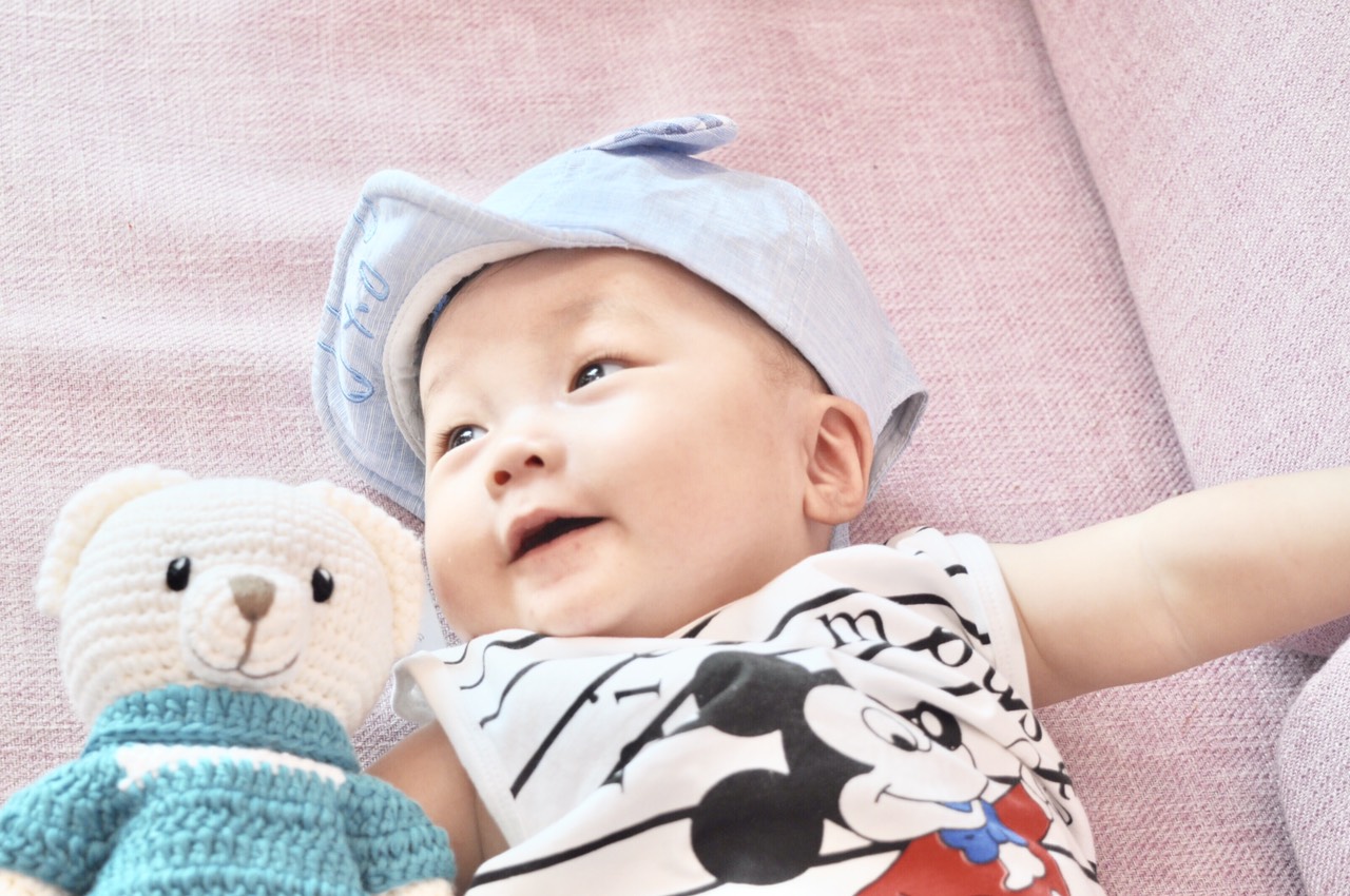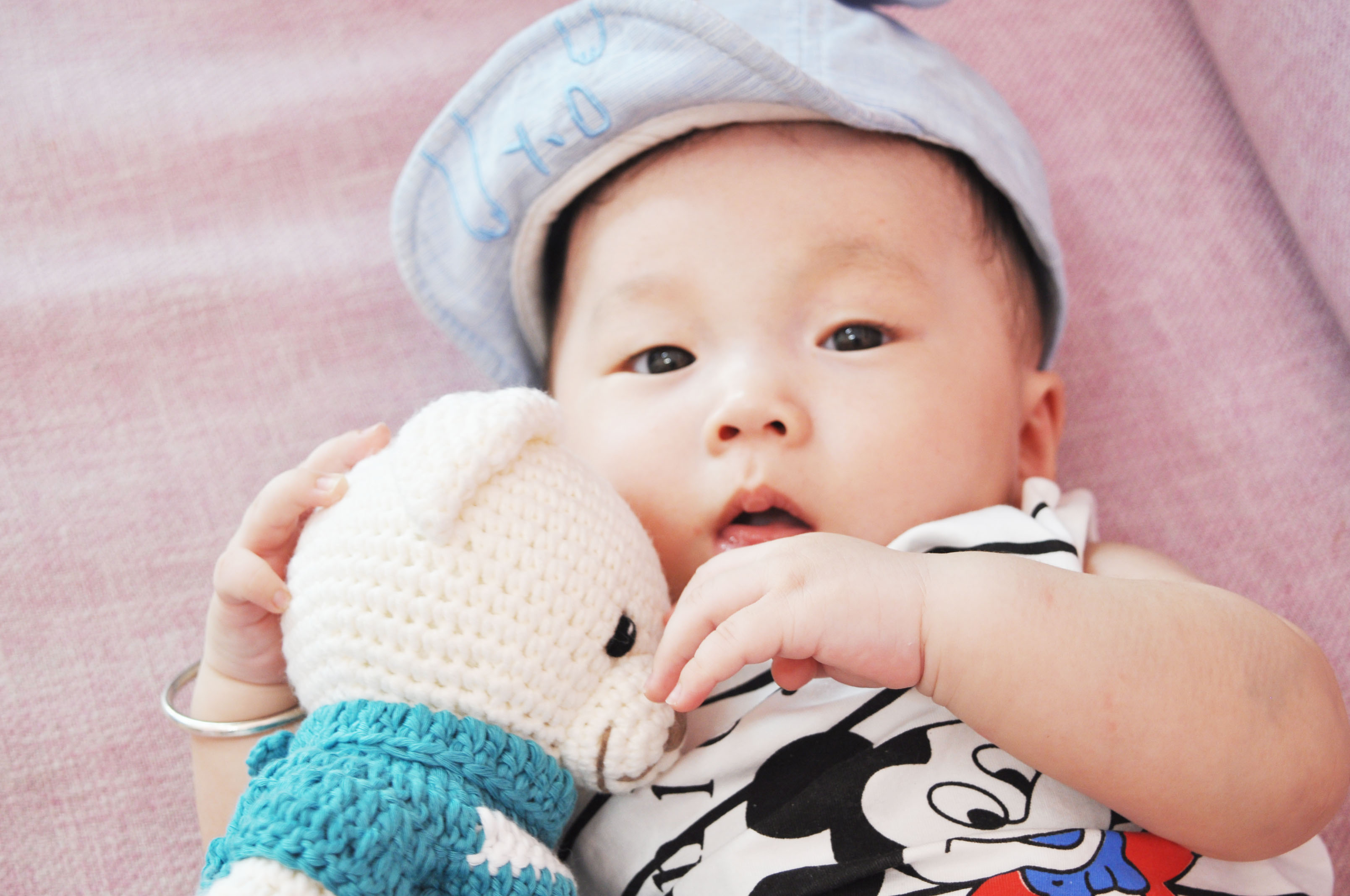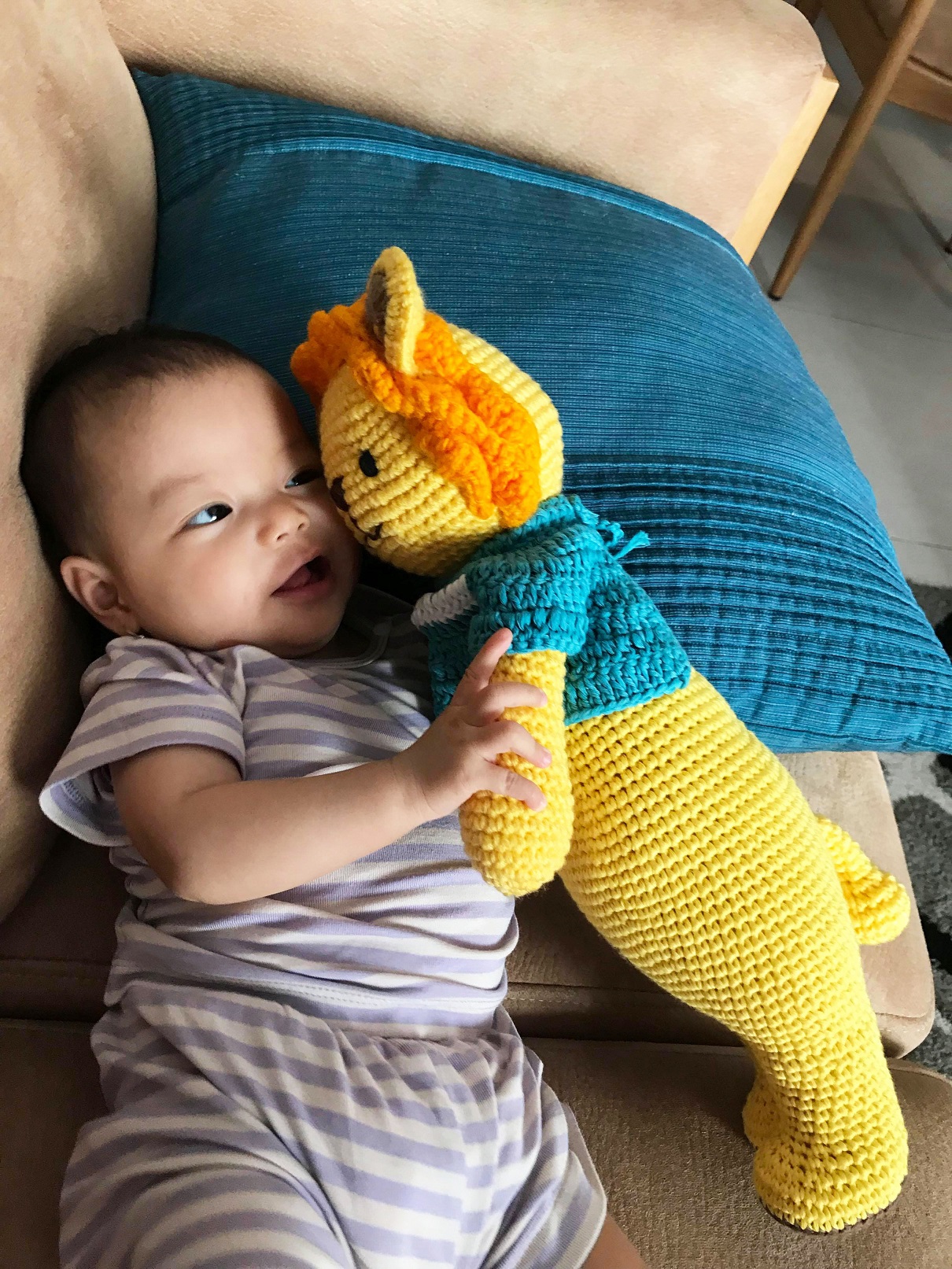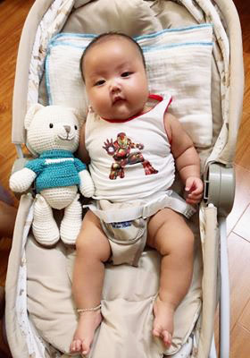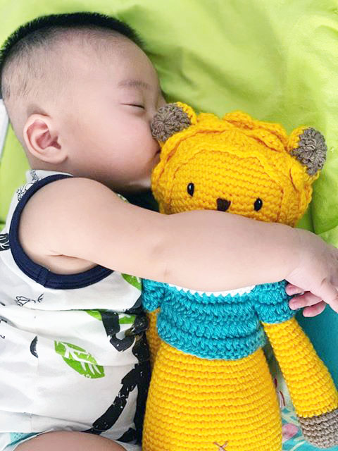 Bé Hiếu, cung Bảo Bình, vừa 5 tháng, lúc nào cũng ôm Bobbie bên mình thôi