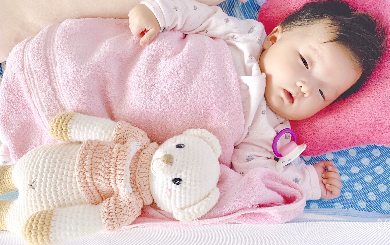 Bé Mint, cung Kim Ngưu, vừa tròn 3 tháng. Bé vừa ngủ dậy mà bị "chộp" hết một tấm rồi
