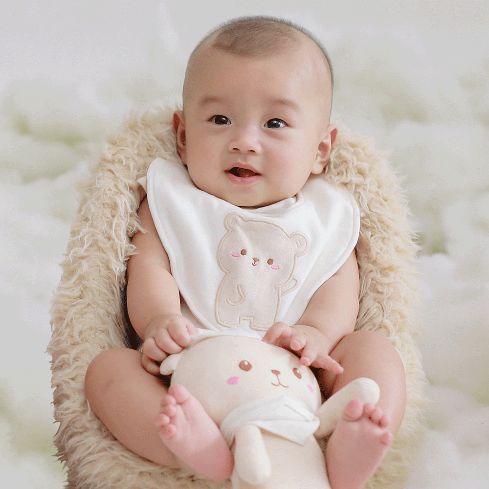 Yếm có bé gấu ngộ nghĩnh, đáng yêu sẽ giúp kích thích thị giác bé và tạo cho bé cảm giác hứng thú khi ăn.